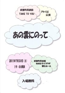 武豊町民劇団TAKE TO YOU 2011年度アトリエ公演 「あの雲にのって」 作・演出:大賀祐樹子音楽:大野栄潤 ~あらすじ~姉とケンカをして自転車で家を飛び出し、トラックに轢かれた12歳のまりん。『死者の国の入り口 […]
